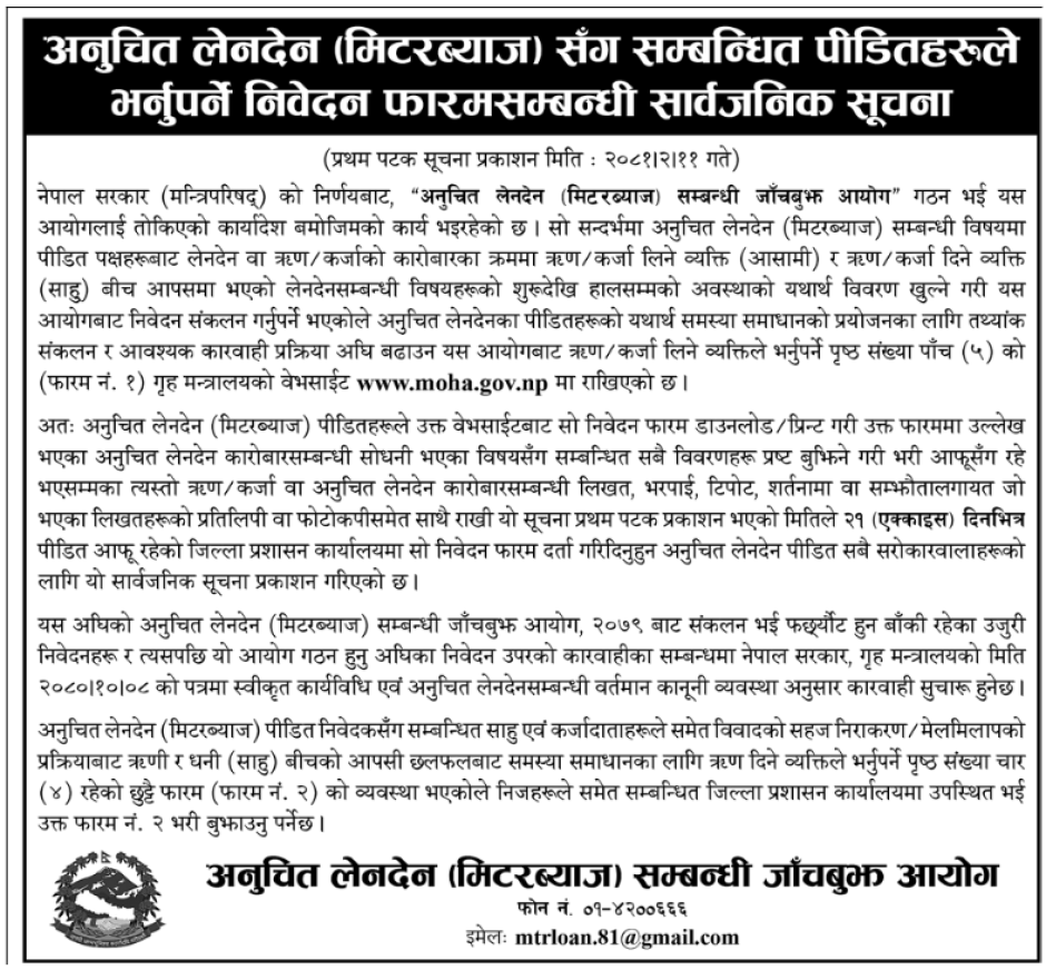अनुचित लेनदेन (मिटरब्याज) सँग सम्बन्धित सूचना ।