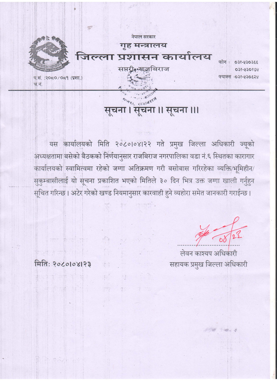अतिक्रमित जग्गा खाली गर्ने सम्बन्धी अत्यन्त जरुरी सूचना ।