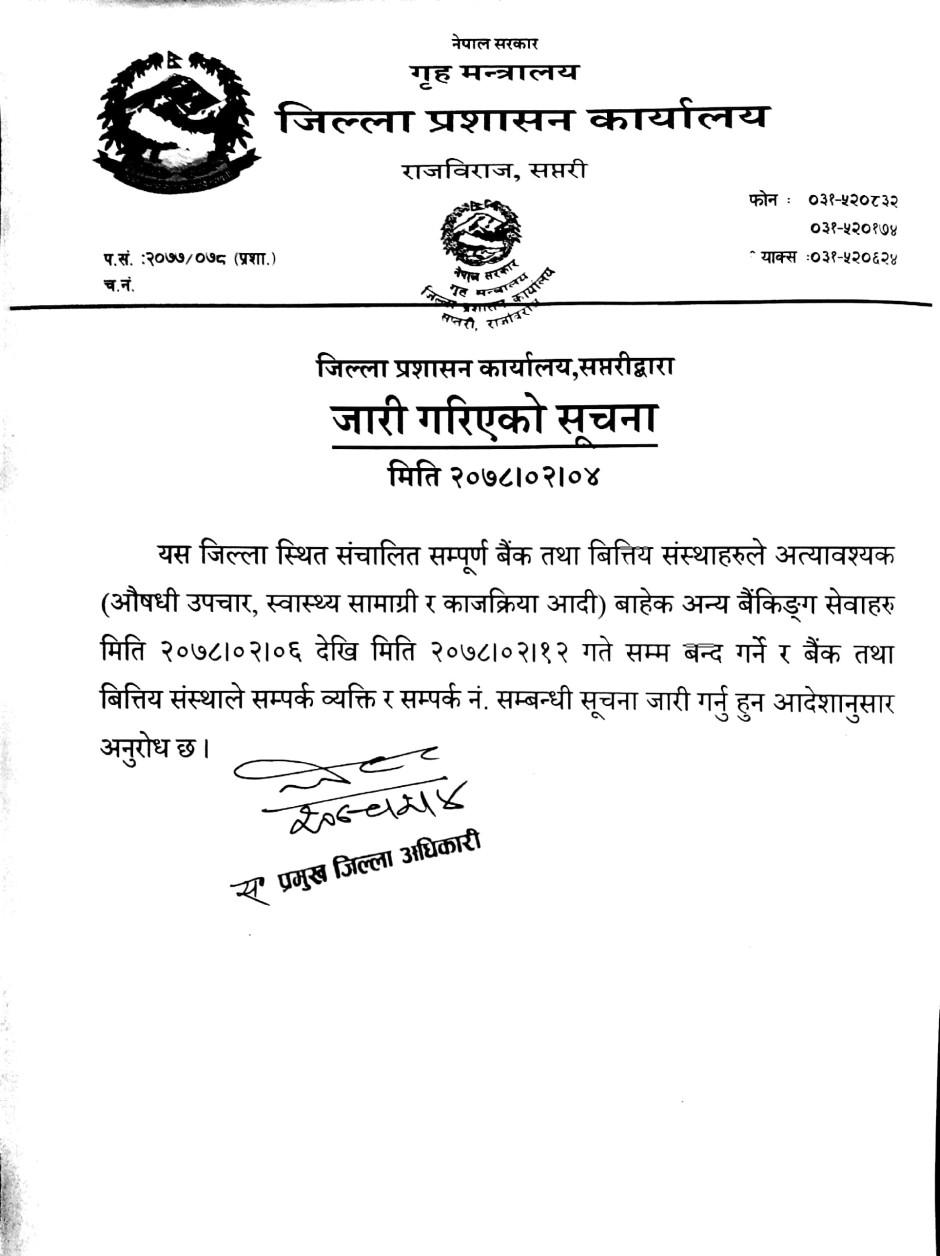 बैंक तथा बितिय संस्था बन्द गर्ने सम्बन्धि सूचना