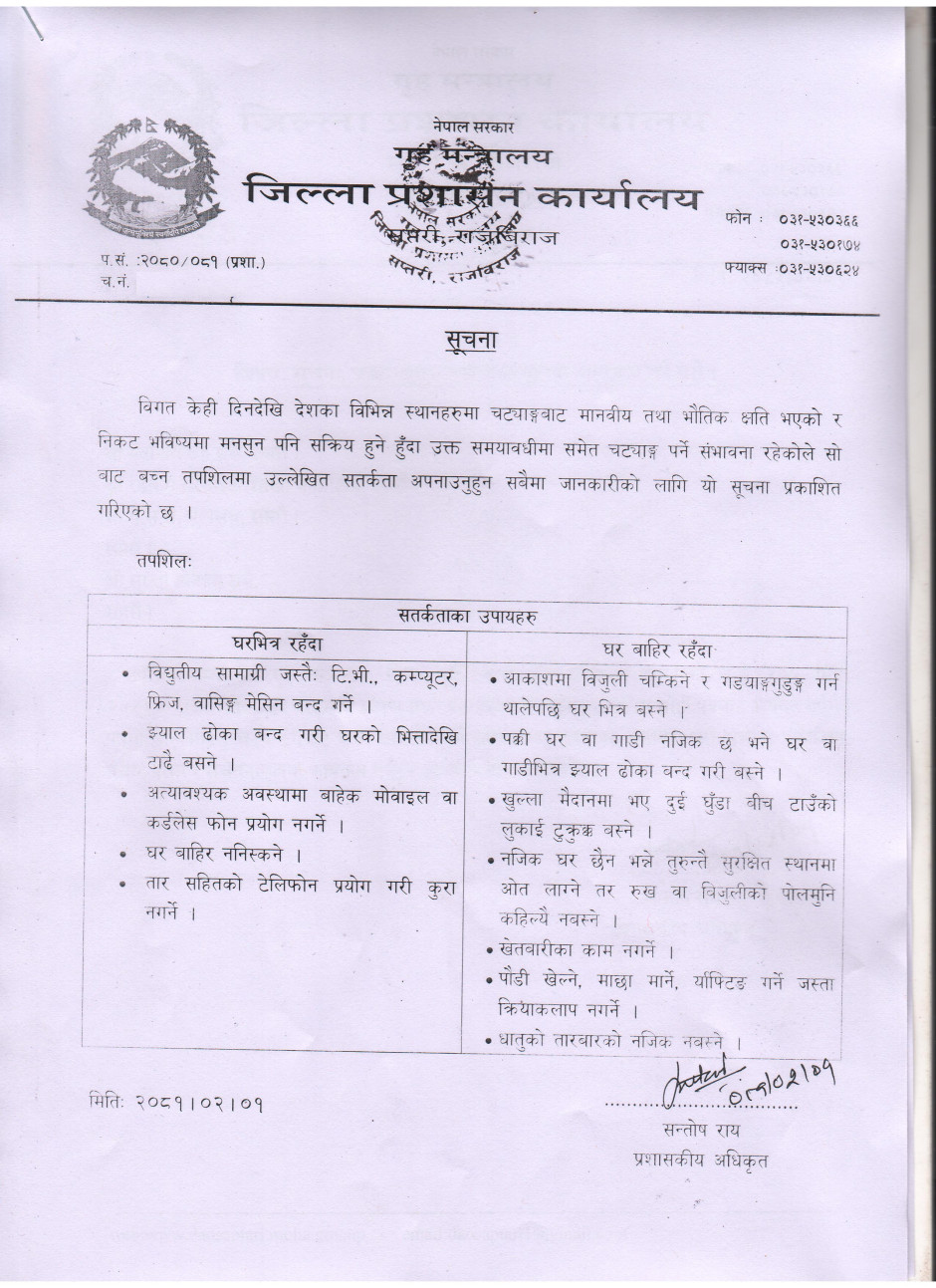 © सर्वाधिकार सुरक्षित जिल्ला प्रशासन कार्यालय, सप्तरी