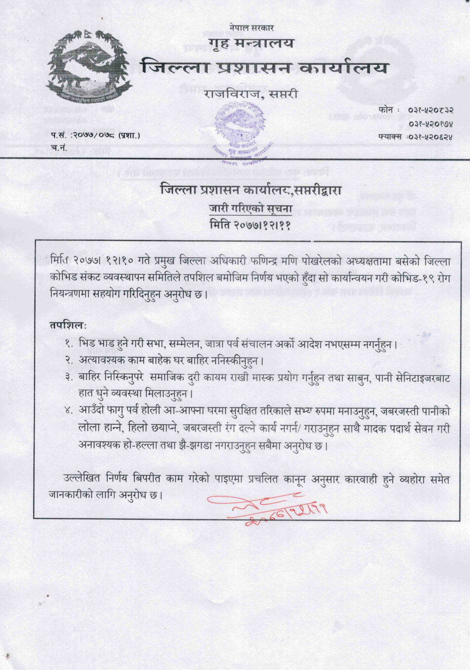 जिल्ला प्रशासन कार्यालय राजबिराज सप्तरीद्बारा जारी गरिएको सूचना