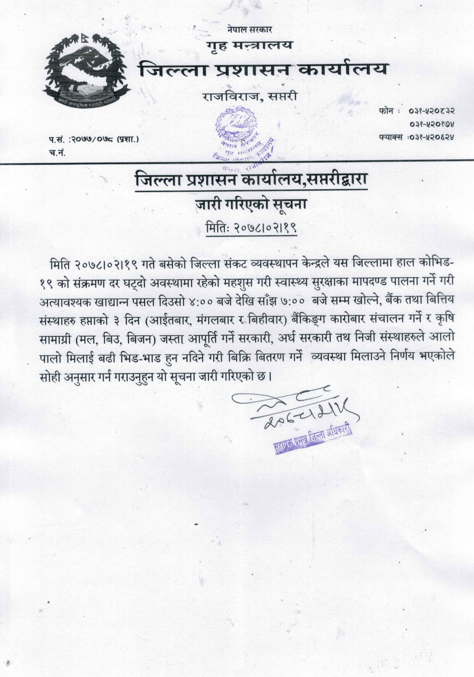 जिल्ला प्रशासन कार्यालय, सप्तरीद्वारा जारी गरिएको सूचना