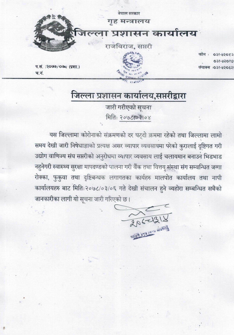 जिल्ला प्रशासन कार्यालय, सप्तरीद्वारा मालपोत तथा नापी कार्यलयको सेवा संचालन सम्बन्धी सूचना
