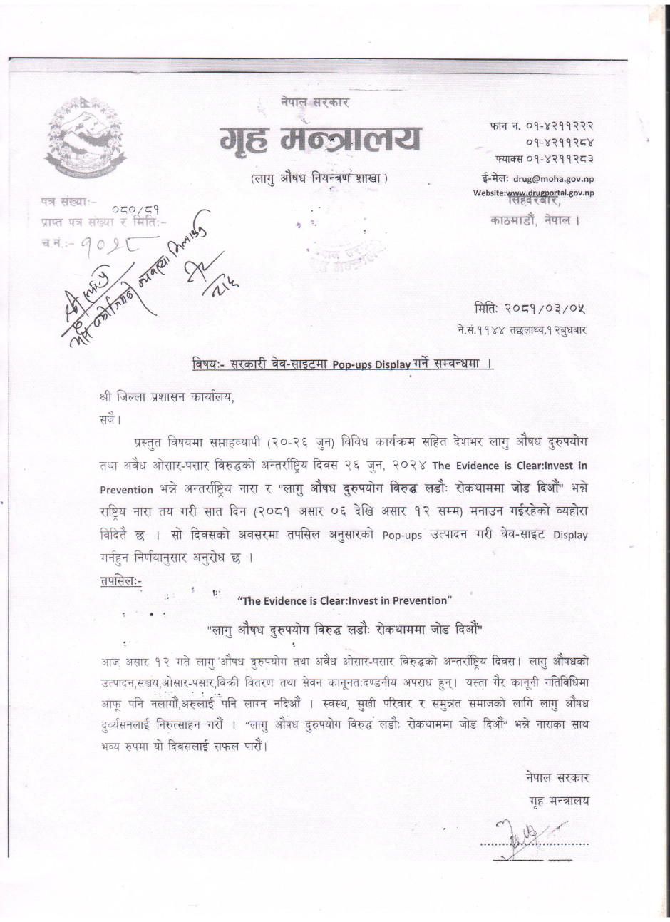 मादक पदार्थ विक्री बितरण बन्द गर्ने सम्बन्धमा अत्यन्त जरुरी सूचना ।