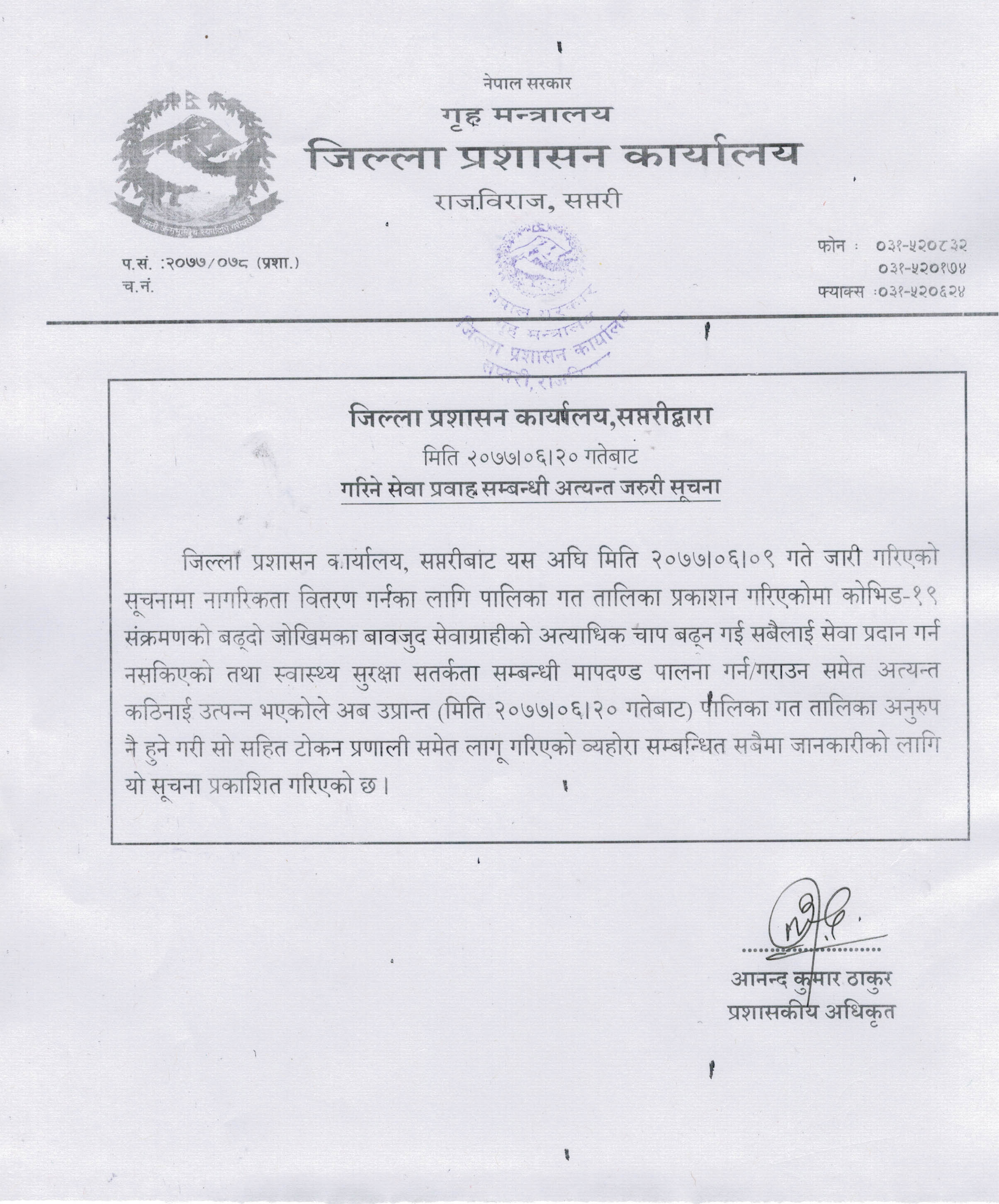 मिति २०७७।०६।२० गतेबाट गरिने सेवा प्रभाव सम्बन्धि अत्यन्त जरुरी सूचना