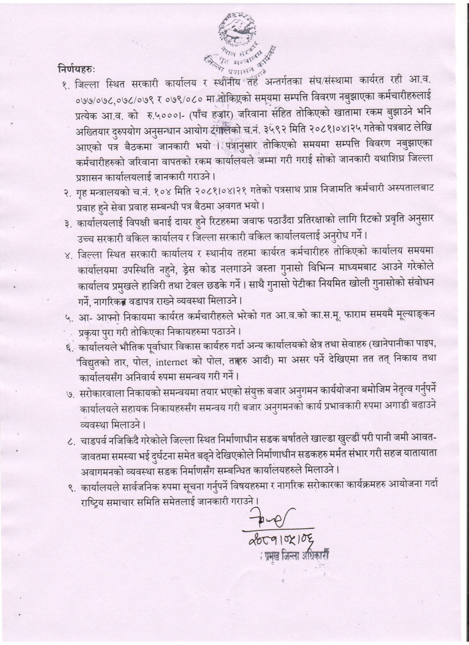 मिति २०८१।०५।०५ गते बसेको कार्यालय प्रमुख बैठक निर्णय