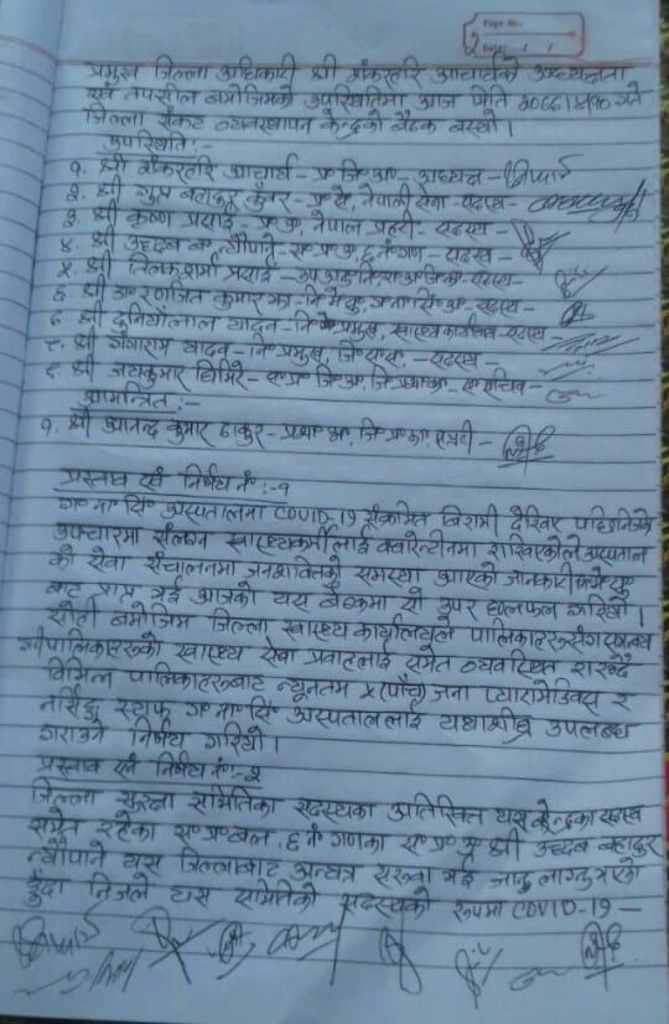 जिल्ला संकट व्यवस्थापन केन्द्र सप्तरीको निर्णय