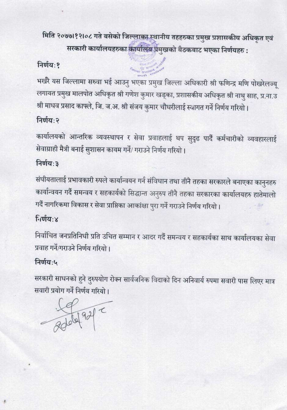 मिति २०७७।१२।०८ गते बसेको स्थानीय तहहरुका प्रमुख प्रशासकीय अधिकृत र सरकारी कार्यालयहरुका कार्यालय प्रमुखको बैठकबाट भएका निर्णयहरु