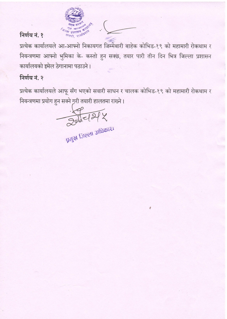 © सर्वाधिकार सुरक्षित जिल्ला प्रशासन कार्यालय, सप्तरी