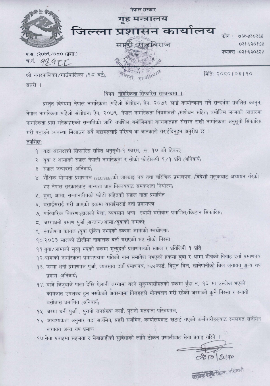 नागरिकता सम्बन्धी जारी सूचना ।