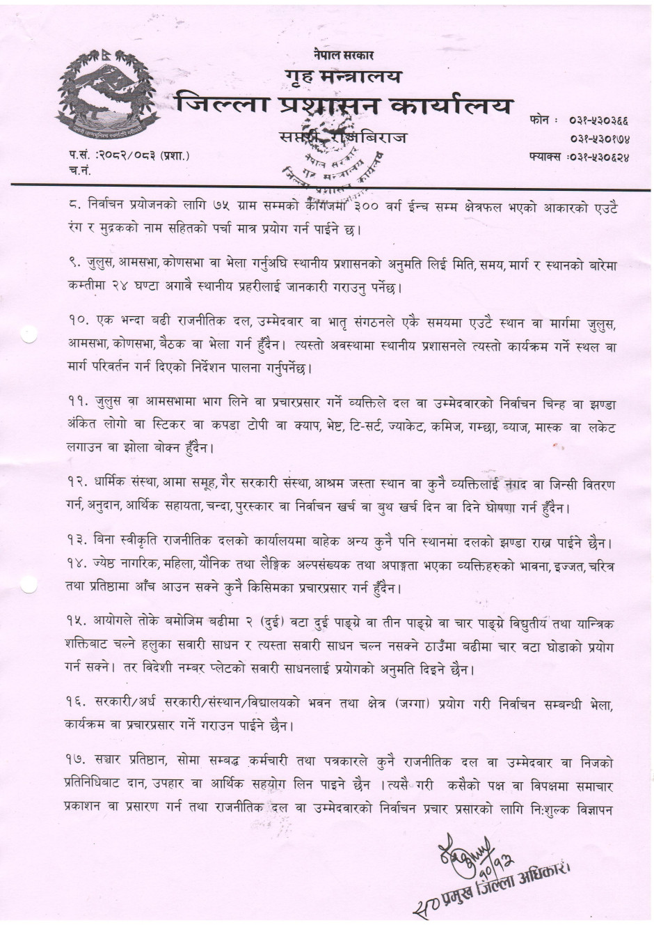 निर्वाचन आचारसंहिता पालना गर्ने गराउने सम्बन्धी अत्यन्त जरुरी सूचना ।