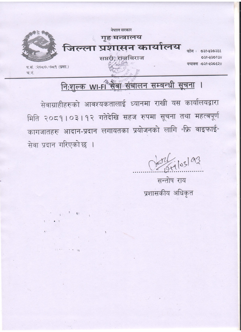 © सर्वाधिकार सुरक्षित जिल्ला प्रशासन कार्यालय, सप्तरी
