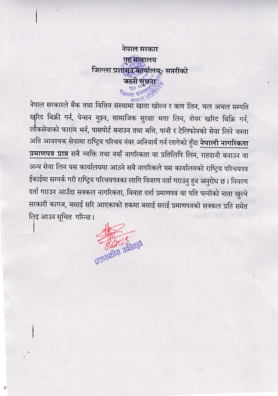 राष्ट्रिय परिचय पत्र सम्बन्धी सूचना
