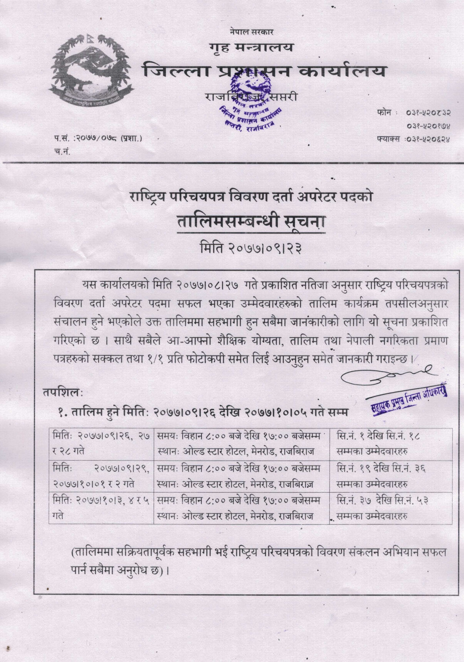 राष्ट्रिय परिचयपत्र विवरण दर्ता अपरेटर पदको तालिमसम्बन्धी सूचना