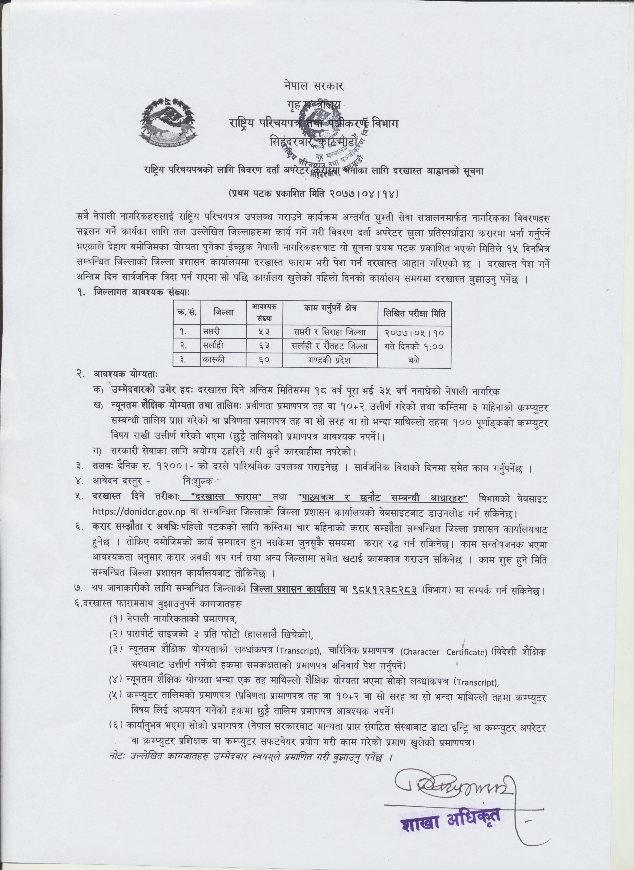 राष्ट्रिय परिचयपत्रको विवरण दर्ता अपरेटरहरुको छनौट सम्बन्धी सुचना