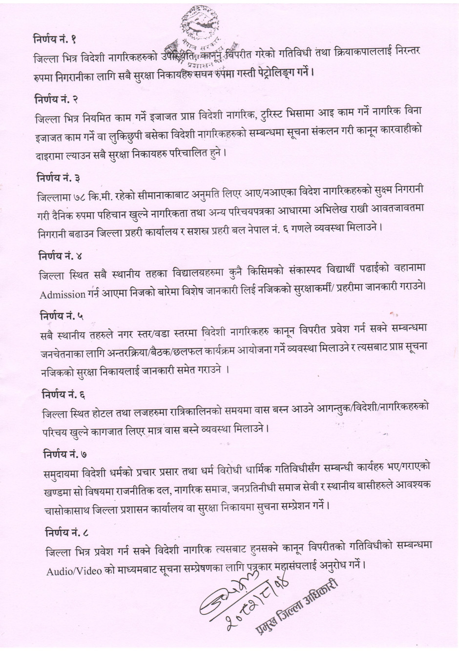 सीमानाका बन्द हुने सम्बन्धी अत्यन्त जरुरी सूचना ।