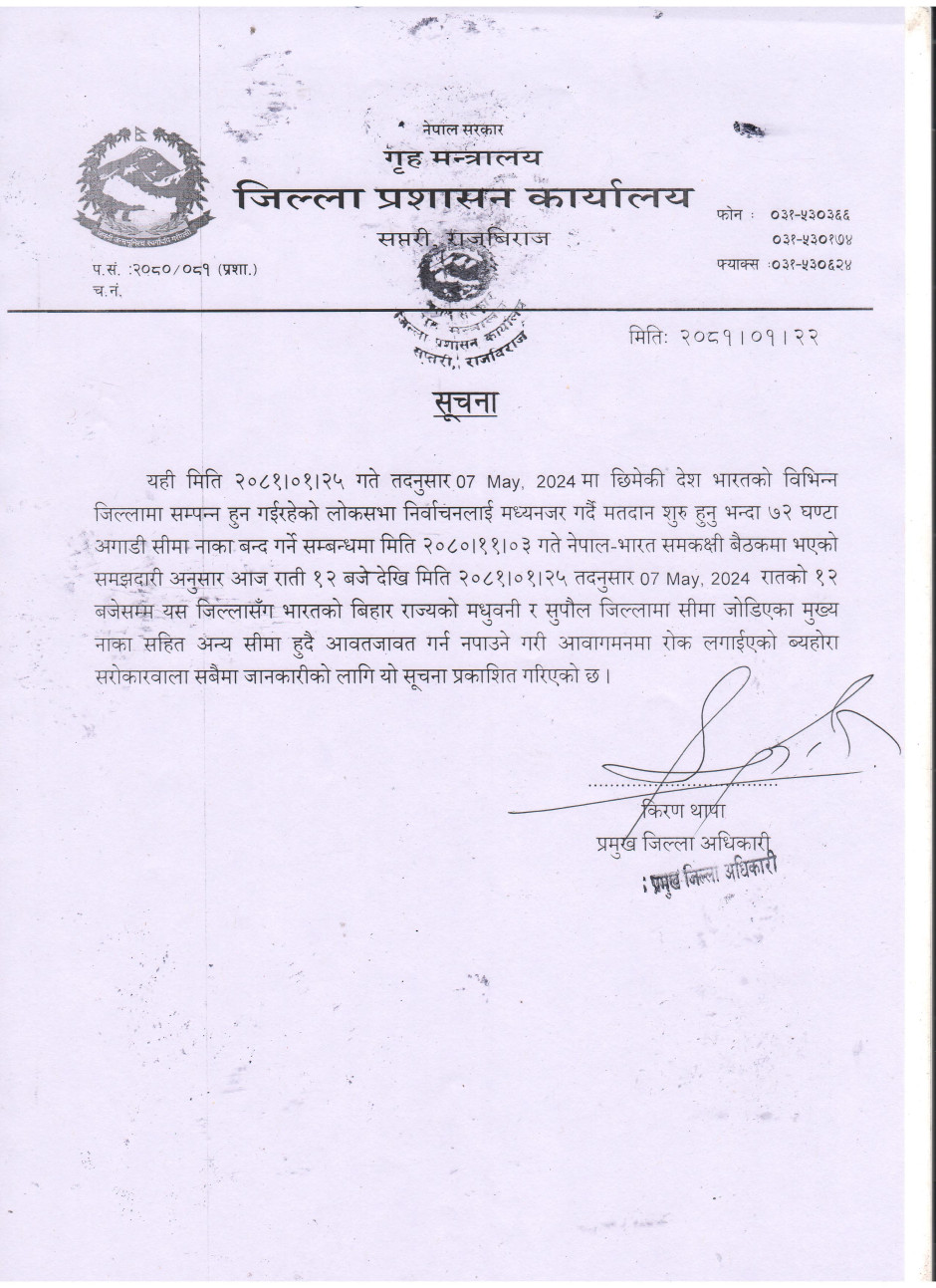 © सर्वाधिकार सुरक्षित जिल्ला प्रशासन कार्यालय, सप्तरी