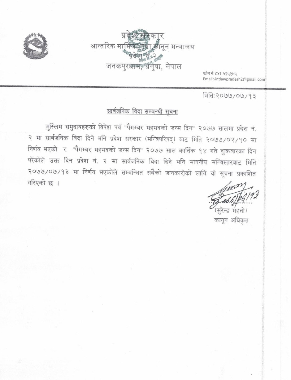 सार्वजनिक विदा सम्बन्धी जानकारी ।