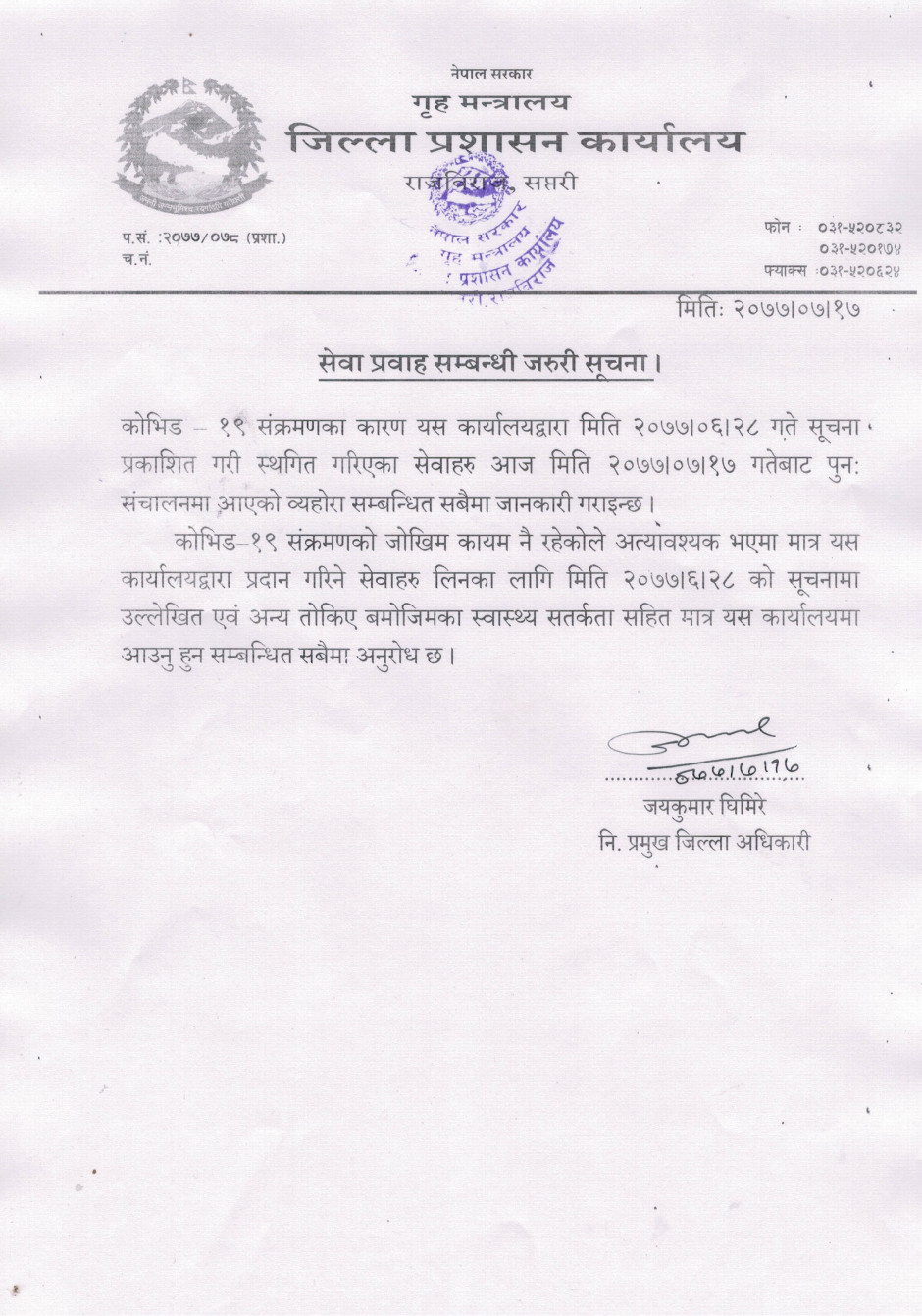 © सर्वाधिकार सुरक्षित जिल्ला प्रशासन कार्यालय, सप्तरी