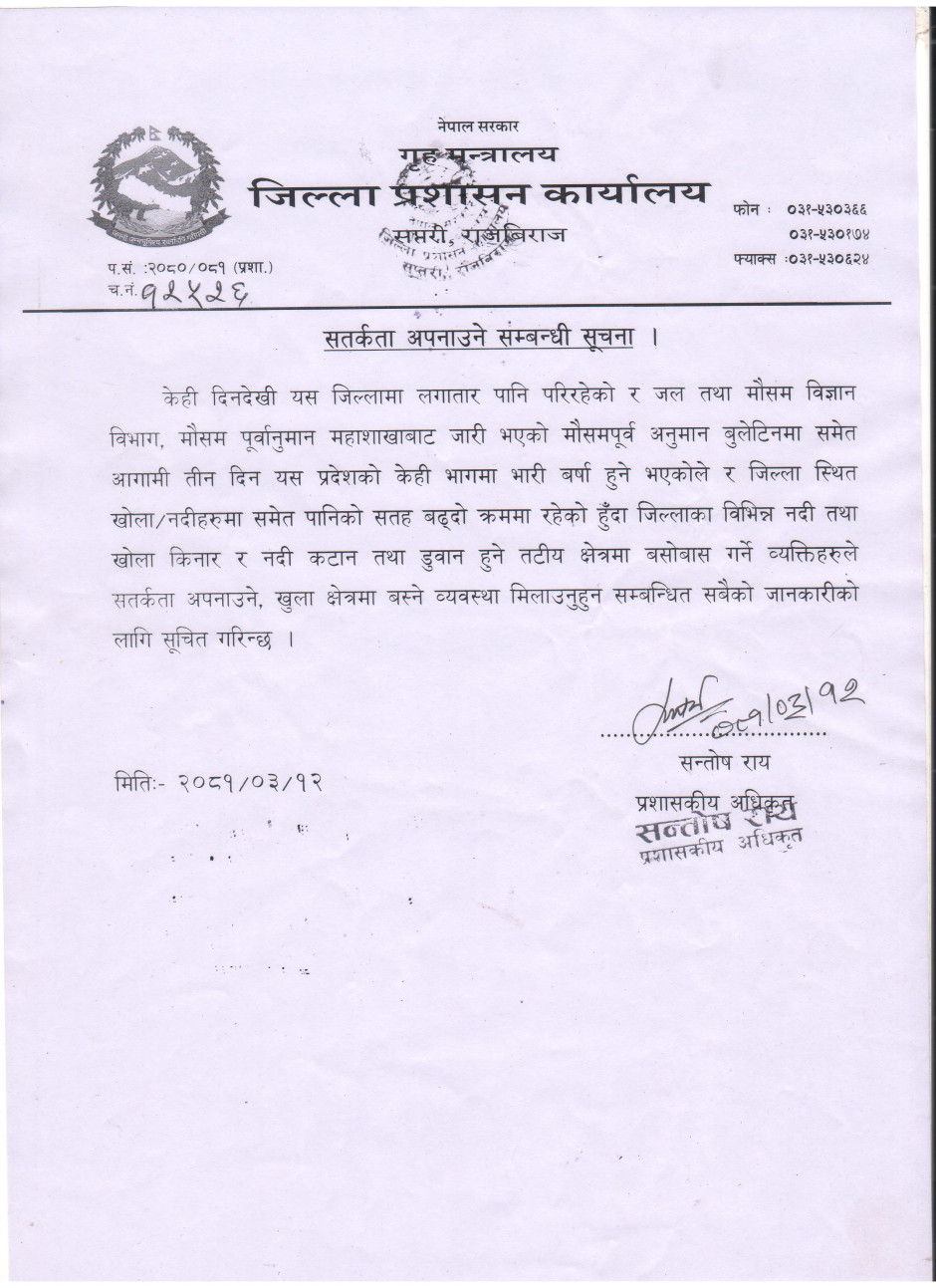 © सर्वाधिकार सुरक्षित जिल्ला प्रशासन कार्यालय, सप्तरी