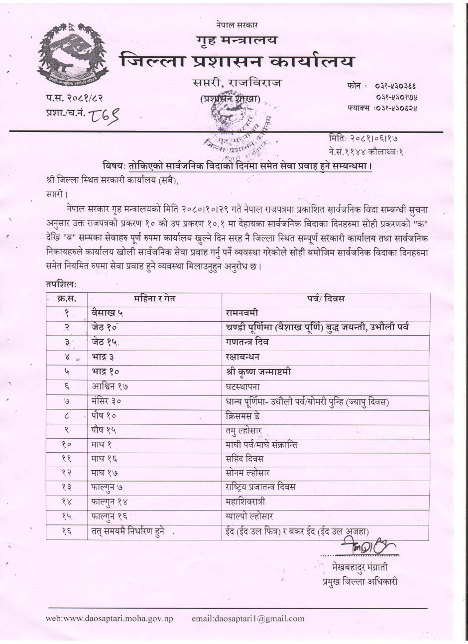 © सर्वाधिकार सुरक्षित जिल्ला प्रशासन कार्यालय, सप्तरी